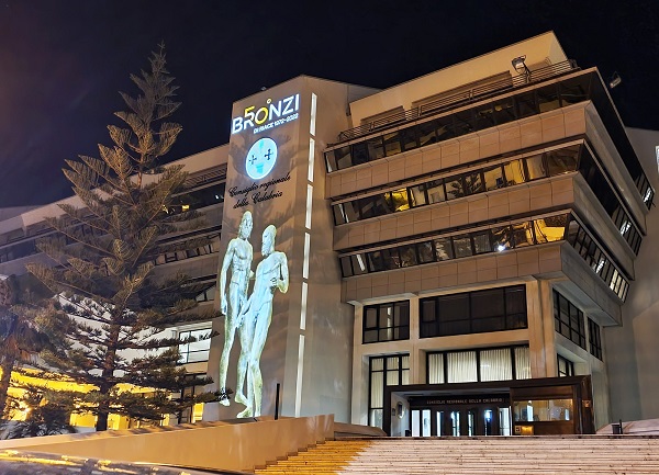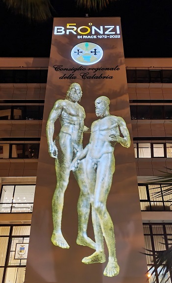 Da sabato sera, l’immagine dei due “magnifici guerrieri” ritrovati il 16 agosto del 1972 è proiettata sulla facciata principale del Consiglio regionale della Calabria.